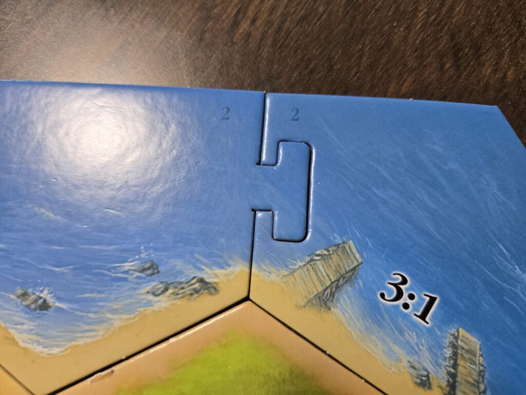 ここの写真に港が写ってたんで港の説明もします。海辺のところに3:1って書いてると思うんですが、ここにお家建てると港を確保したとなってアドバンテージを得られます。
