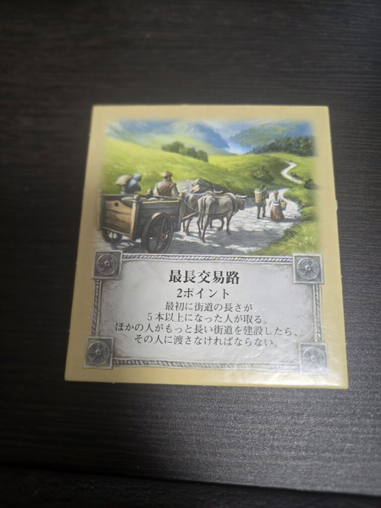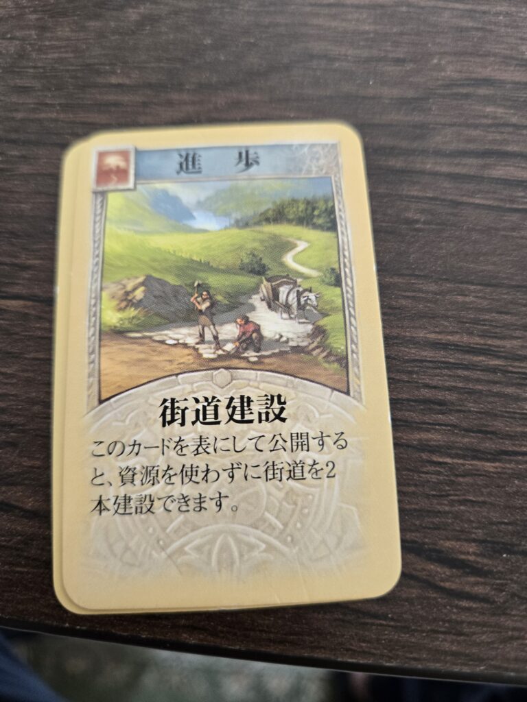 25枚のうち2枚が街道建設カードです。道を2個作ることが出来ます。序盤も嬉しいし、後半道バトルする時に来たら嬉しい。