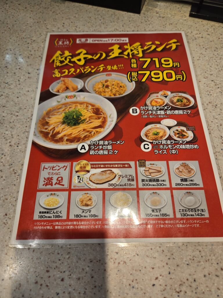 私は出身が大阪で、お手軽な中華屋といったら餃子の王将でした。東京に来たら日高屋っていう、もっと巨大勢力がいてびっくりした思い出。小岩には王将も日高屋もどっちもあるけど、ランチに王将行きました。