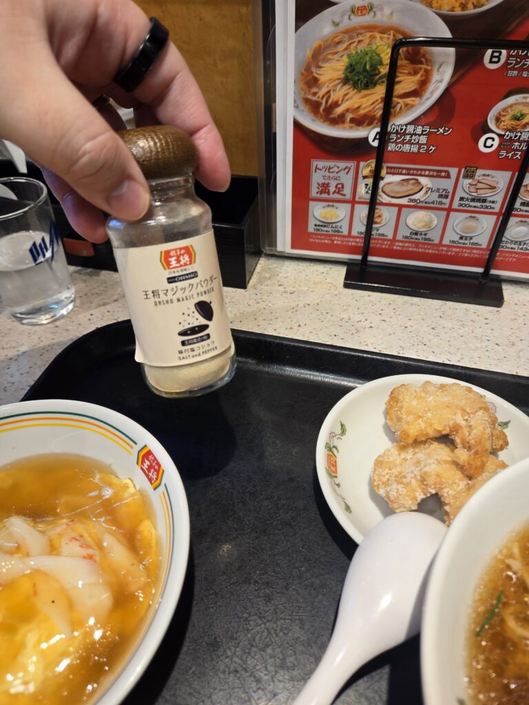 このマジックパウダー美味しいですよね。唐揚げにはもちろん合うし、ラーメンにぱらりとしても美味しい。