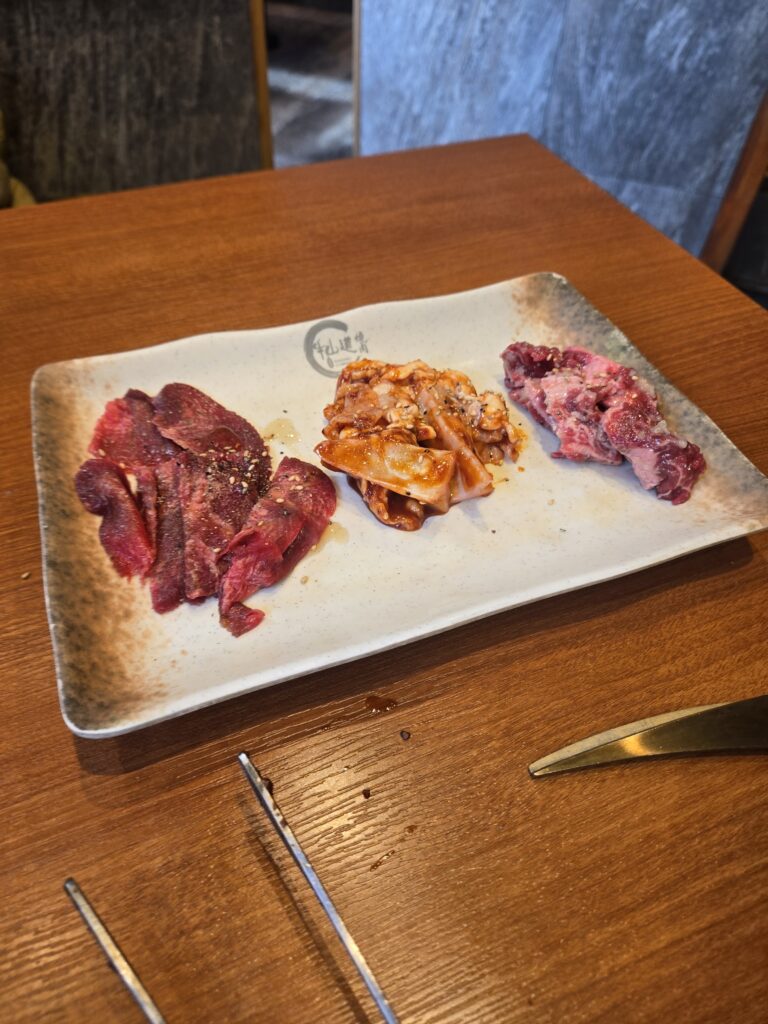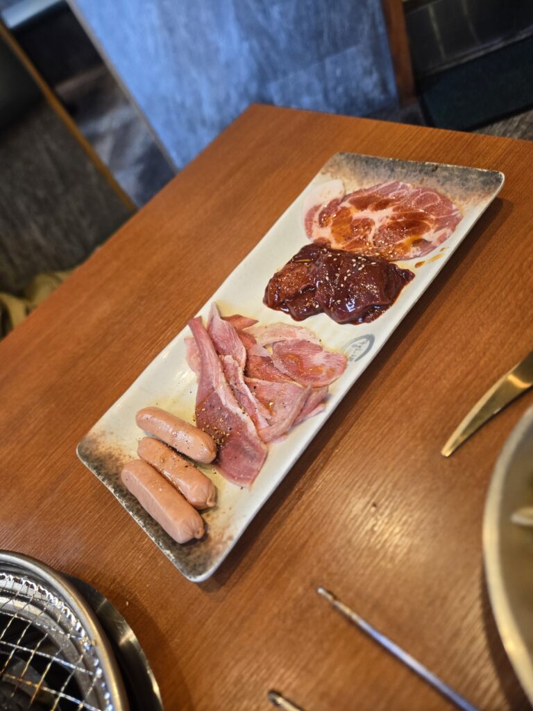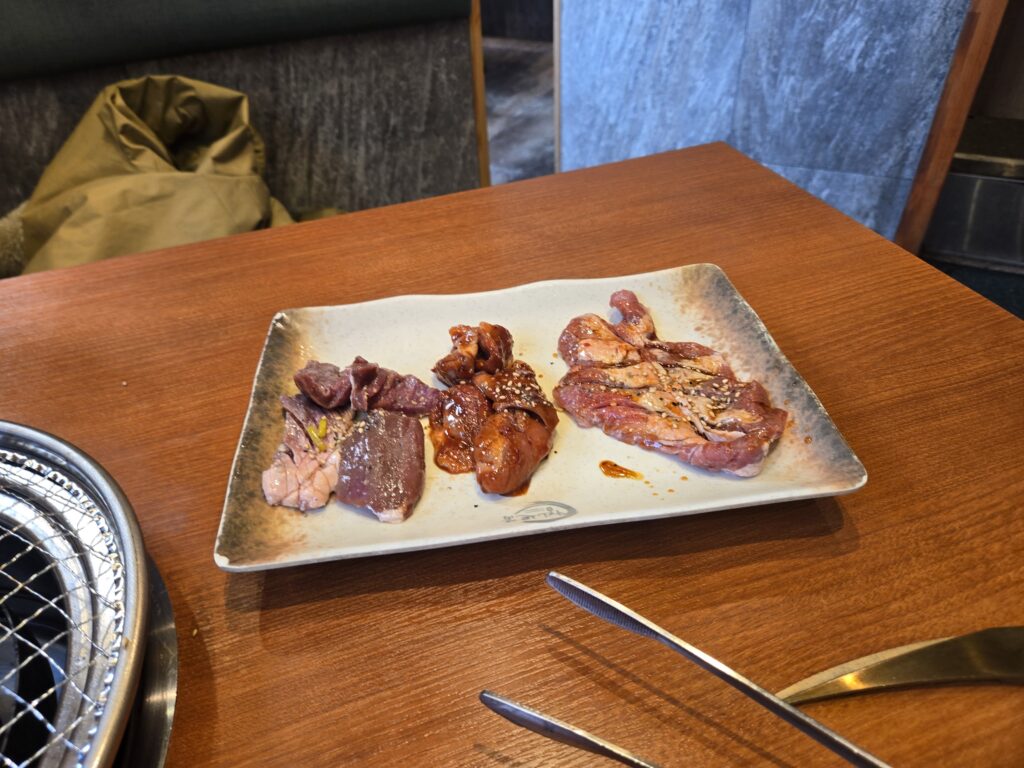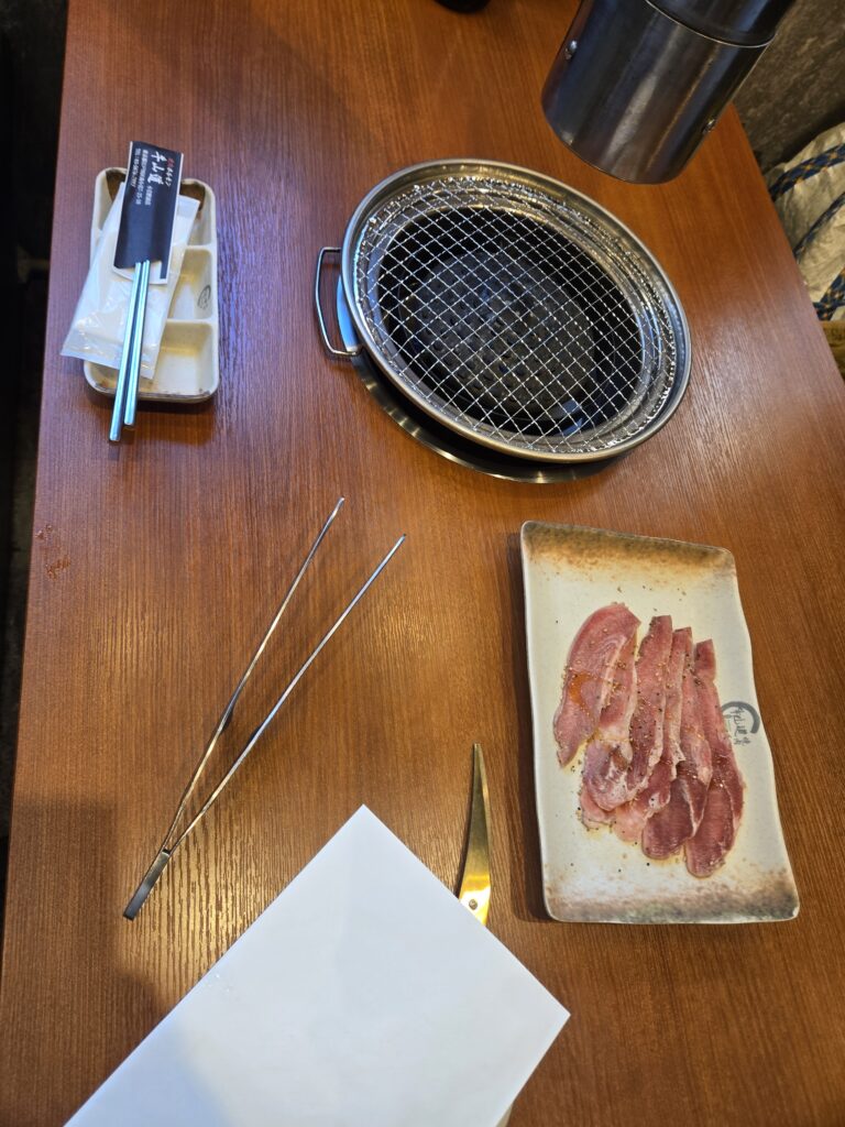 最初に豚タンが出てきて、そこからスタートです。好みが分かれるのかもしれないですが、自分は豚タンはこりこりした食感が好きで油っぽくもないので、量食べられるから好きです。卓上にネギだれもあるのでお好みでどうぞ。自分はしょっぱくてつかってないですが。