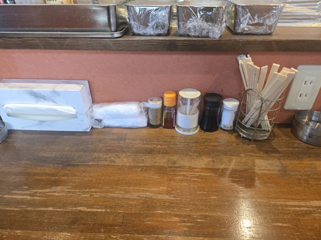 カウンターは全部で6~7人座れそうな感じです。昼飲みもOKでタバコもOKなんで、常連さんなのか昼から飲んでる方も居たりします。