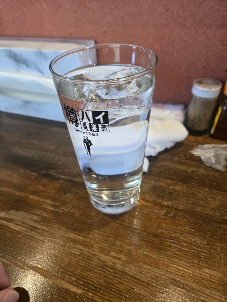 お冷がこのグラスで出てきます。もう仕事午前上がりにしてお酒飲みたくなりますね笑