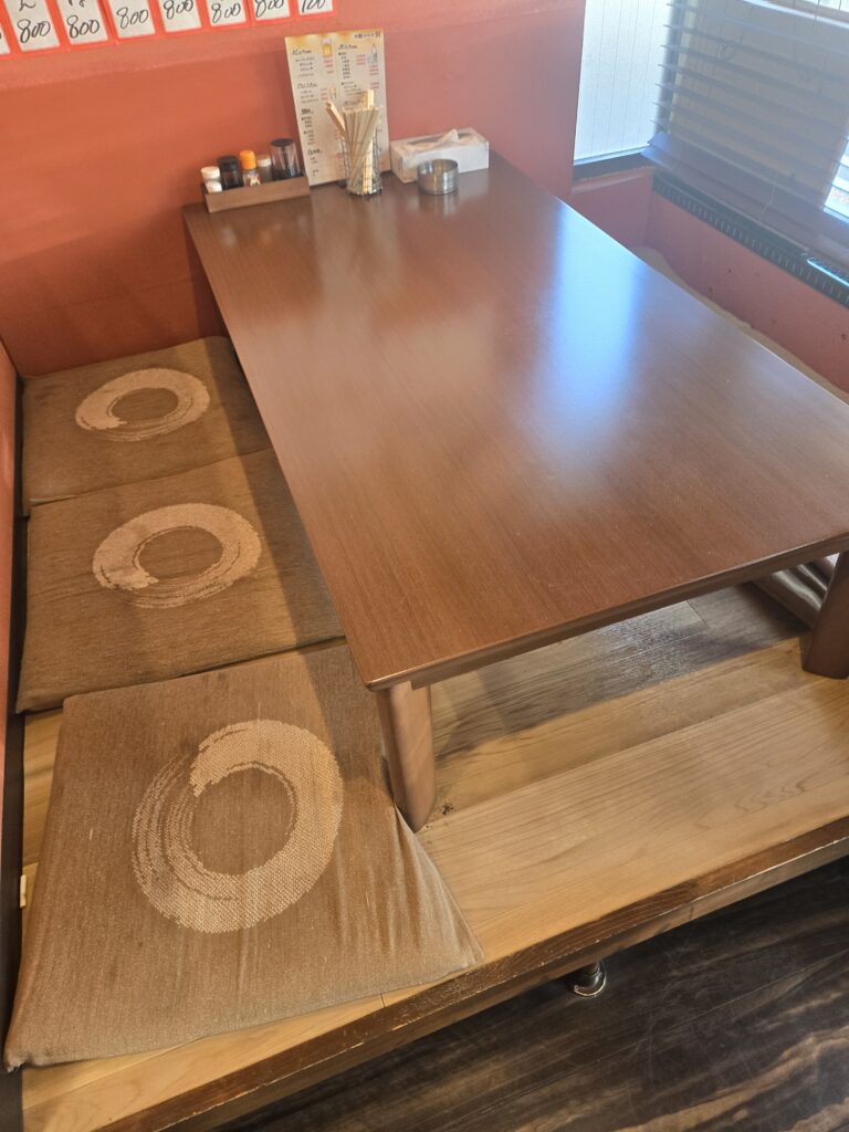 店内はこんな感じの座敷が1個あって、他はカウンターです。飲み会やるならここ予約取れたら良さそうですね。