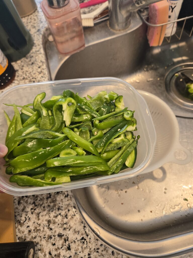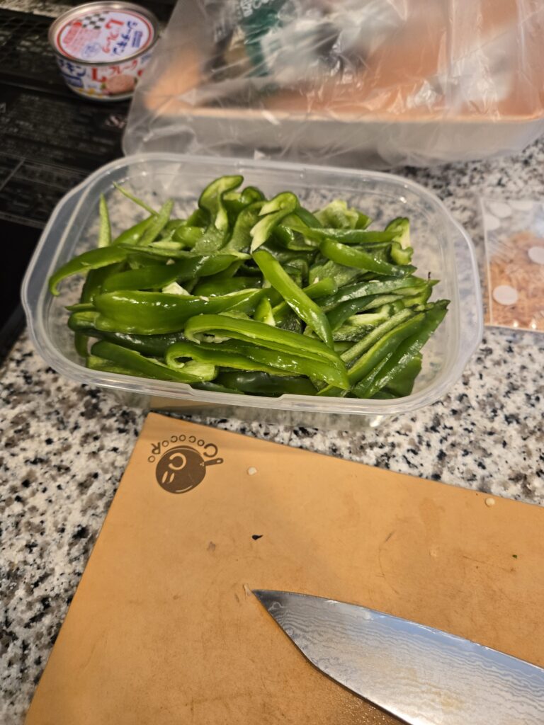 野菜自体は好きなんですけど、ザ野菜ってメニューを毎回作るのはめんどくさくて、週末に作っといてそこから取れば食べられるピーマンのやつを常備菜にしてます。それをご紹介。
