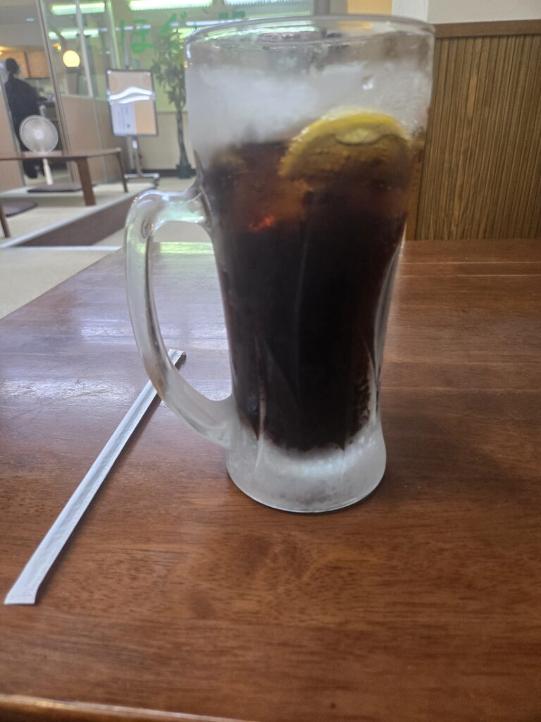 一部の商品は料金変わらずメガサイズにしてくれます。キンキンのコーラがめちゃくちゃうまい!レモン添えてるところもGood。