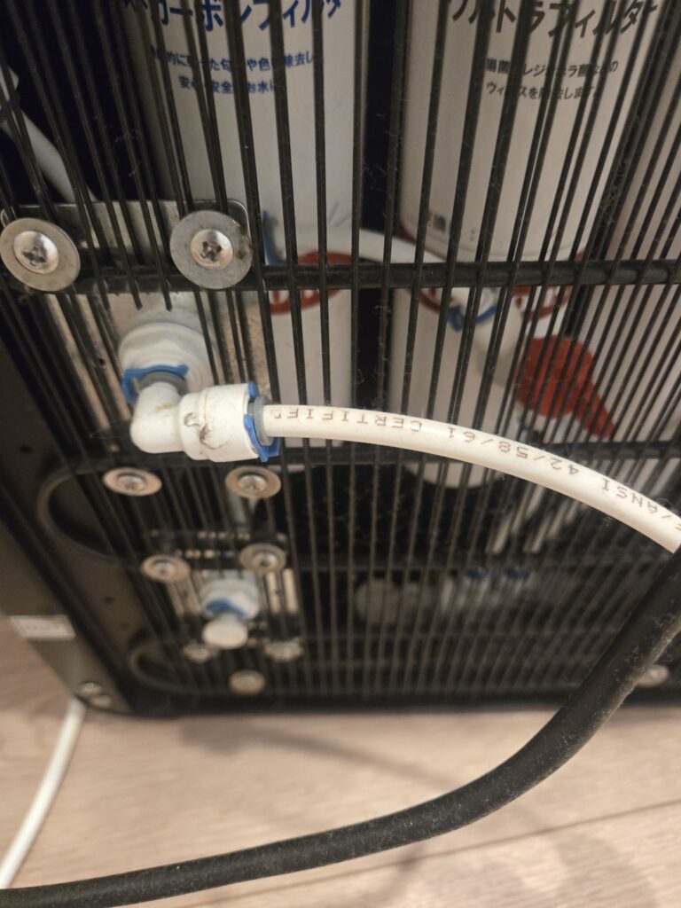 冷蔵庫からも後ろを通って、ウォーターサーバーとつなげてます。ざっくり言えばUの逆みたいな感じでぐるりと繋いだ形です。