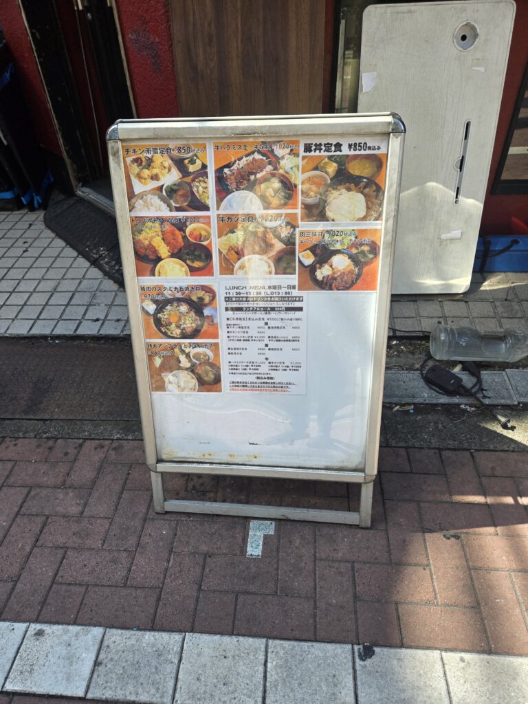 ランチメニューの看板が出てます。以前はお弁当出してた時期もあったんですけど、今はなくなったのかもしれません。
