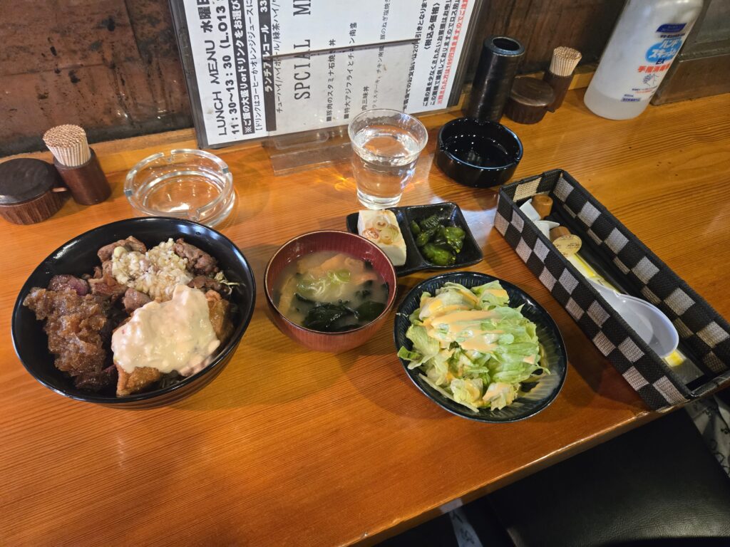 どっちも美味しいんですけど、あと100円足せば肉三昧丼いけるなら肉三昧丼のほうが良いかなって気がしてます。チキン南蛮もおいしいんですけど、ハラミがめっちゃおいしくて。